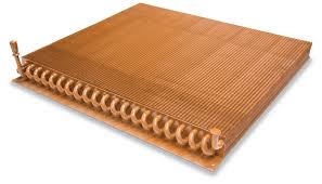 Carboline is applied in the final stage prior to shipping, after the unit has been assembled and all the coils have their requested coatings. The entire condenser section of the unit, including cabinet, fans, motor, and piping, is sprayed with the coating. Component labels are masked off to allow for service and technical information access. The coils themselves do not get coated with Carboline, because they generally have corrosion protection such as Esgard, Technicoat or E-Coat baked on before assembly, and additional coating would be unnecessary and interfere with airflow. Copper Fin/Copper Tube (CuCu) Coils For ultimate protection, particularly in salt-water atmospheres While more expensive than standard aluminum fin coils, copper fin coils provide some unique advantages: Copper is generally stronger and more durable than aluminum, which can help prevent damage to fins Copper provides better heat transfer than aluminum (92% vs 49% according to some estimates)