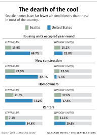 Most Read StoriesBut as our heat wave drags on, it seems like a lot of us are reconsidering. Last year, we set a record for the warmest July and August, with an average high temperature of 80 degrees. This year, summer is starting out even hotter. It’s beginning to feel like the new normal. Worse yet, it’s not cooling down at night like it’s supposed to. For the last week in June, low temperatures were at least 10 degrees above average, making it uncomfortable to sleep. In places where this kind of heat is normal, folks are better prepared. Take Washington, D.C., where the average July high temperature is 88 degrees. According to data from the U.S. Housing Survey, more than 9 out of 10 homes there have central air. And nearly any home that doesn’t has at least one window unit. But here in Seattle, only one out of six has central air. About the same number have a window unit — although if the scene at Home Depot is any indication, that statistic is changing as I write this.